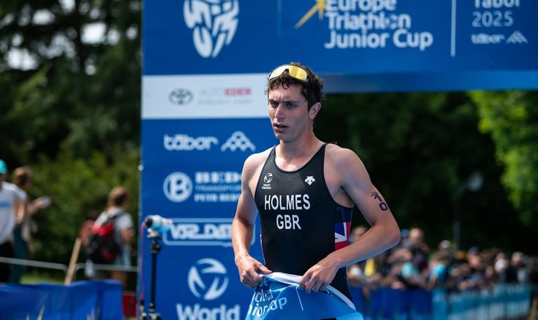 My race in Tabor was my best all round performance of my life. I exited the swim 3rd and got onto the bike first after having the fastest T1. I got in a two man breakaway with Jelle Kaindl from Austria where we worked well, going through and off the whole was on the 20km hilly bike course. I got onto the run first and held it comfortably until the end. Taking my first European Junior Cup win was a great experience, and the Czech Republic was a great country to race in.