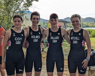 My second GB appearance and my first in the Junior ranks was in the 2024 Europe Triathlon Sprint and Relay Championships Balikesir. In the heats I didn't swim well coming out around halfway, however I managed to push the pace on the bike and run to make the A-Final the next day. In the final I swam well coming out 5th, I just missed the breakaway of 4 so found myself in the chase pack. After this I struggled due to the unrelentless Turkish heat and faded on the run.