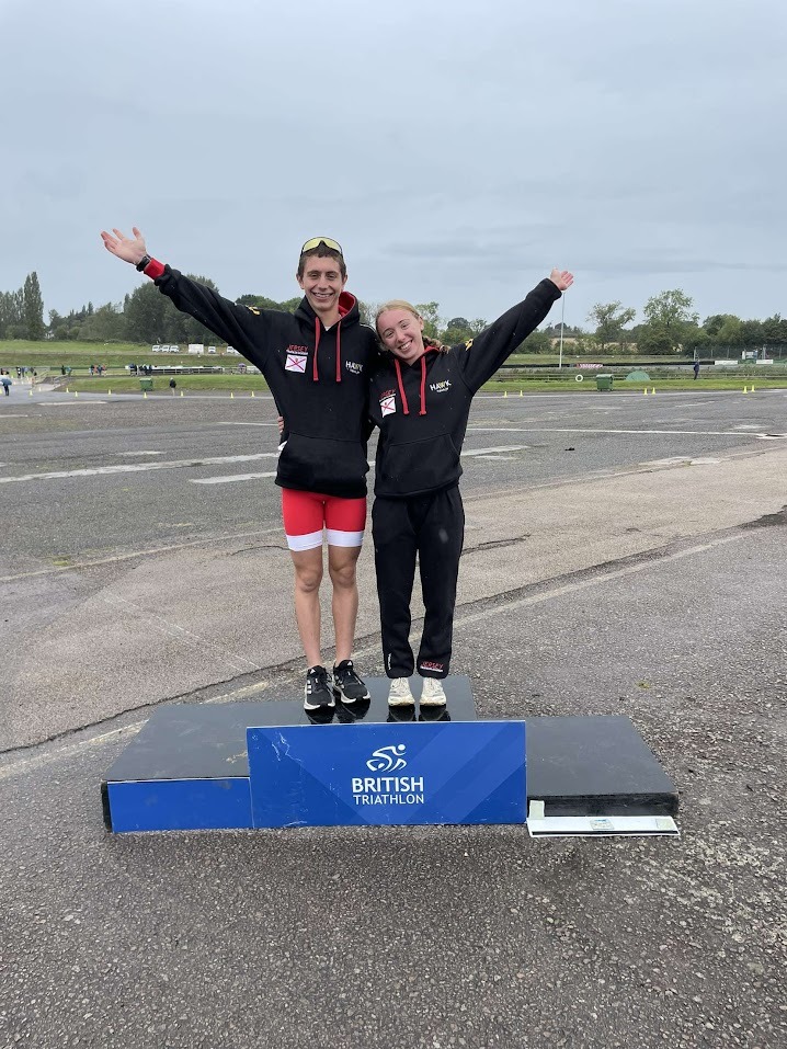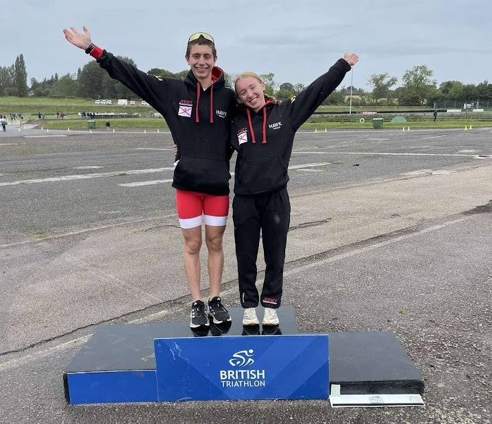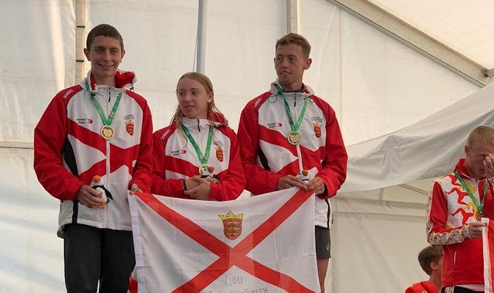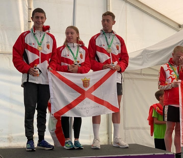 The 2023 Internation Island Games took place in my birth island of Guernsey. Just a short 10 minute flight from Jersey. I was too young to compete in the individual olympic distance race, but took part in the mixed team relay with Siena and Ollie. I was the first leg and handed over in third, Siena quickly made that up in the swim, extending her lead on the bike and run to hand over with a very big gap to second all but securing the gold. Ollie brought home the last leg comfortably giving Jersey the gold.